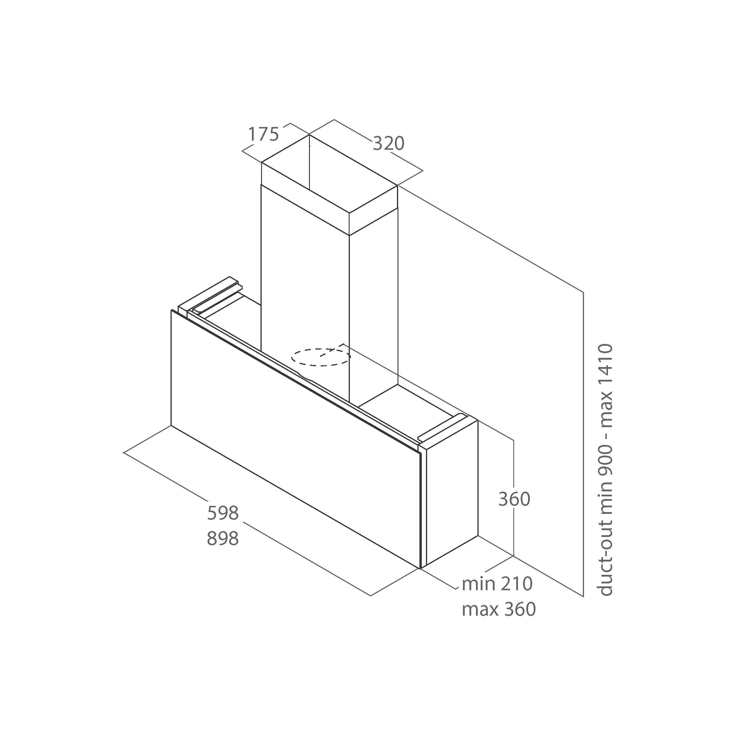 - Produkt (BxDxH) 598 x 210 - 360 x 360 mm